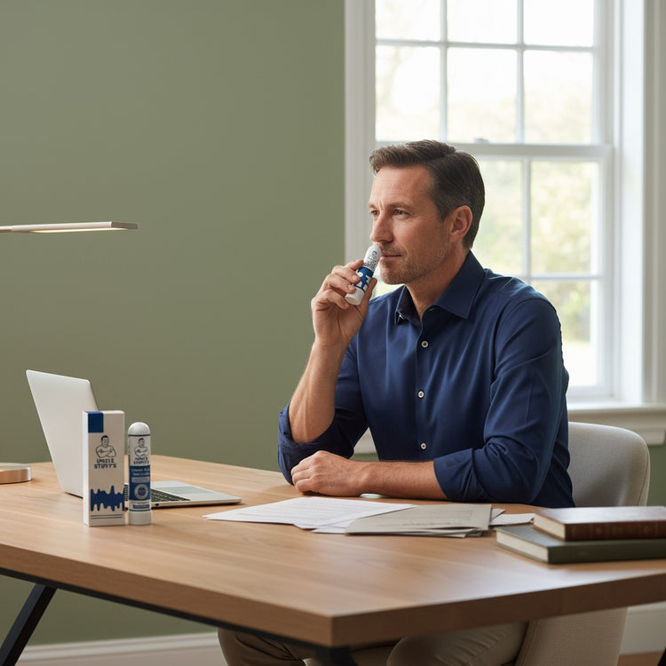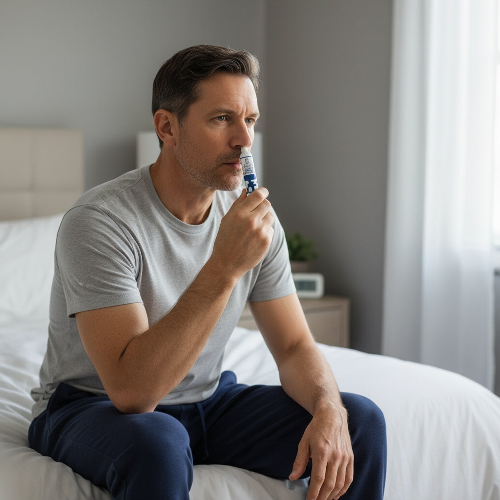 The inhaler typically delivers results in about five minutes thanks to nasal absorption bypassing digestion.